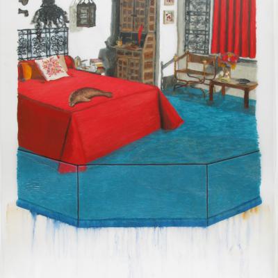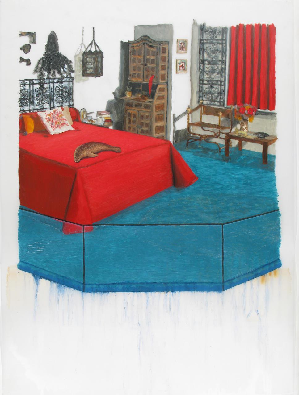 Oil and Japanese paper on Mylar, 2009, 24” x 18”
