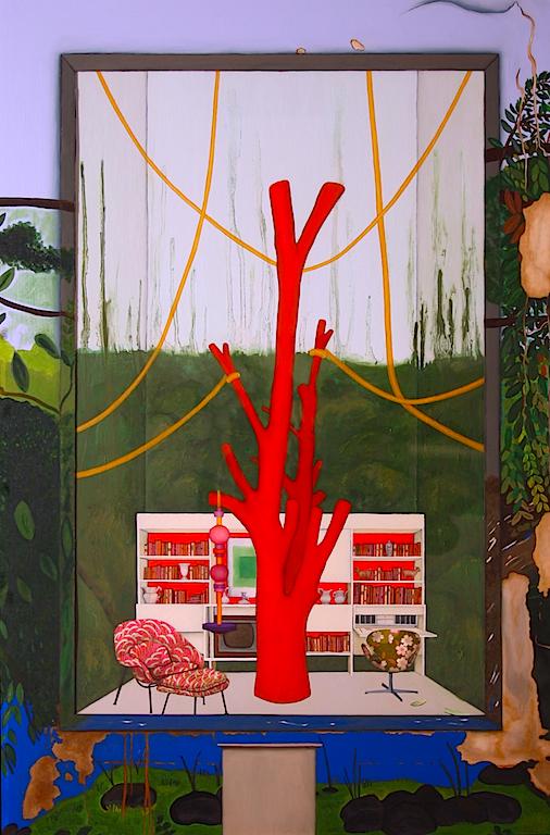 Oil, Acrylic, Japanese paper, Mylar and clear acrylic sheet, 2013, 36"x24"