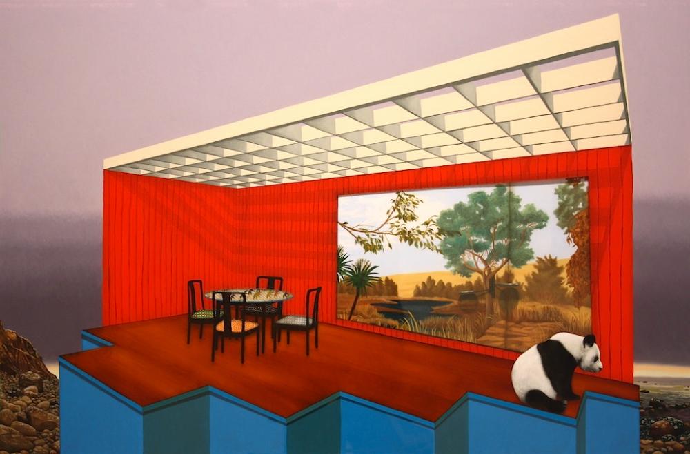 Oil, Acrylic, Japanese paper, and clear acrylic sheet, 24"x18"