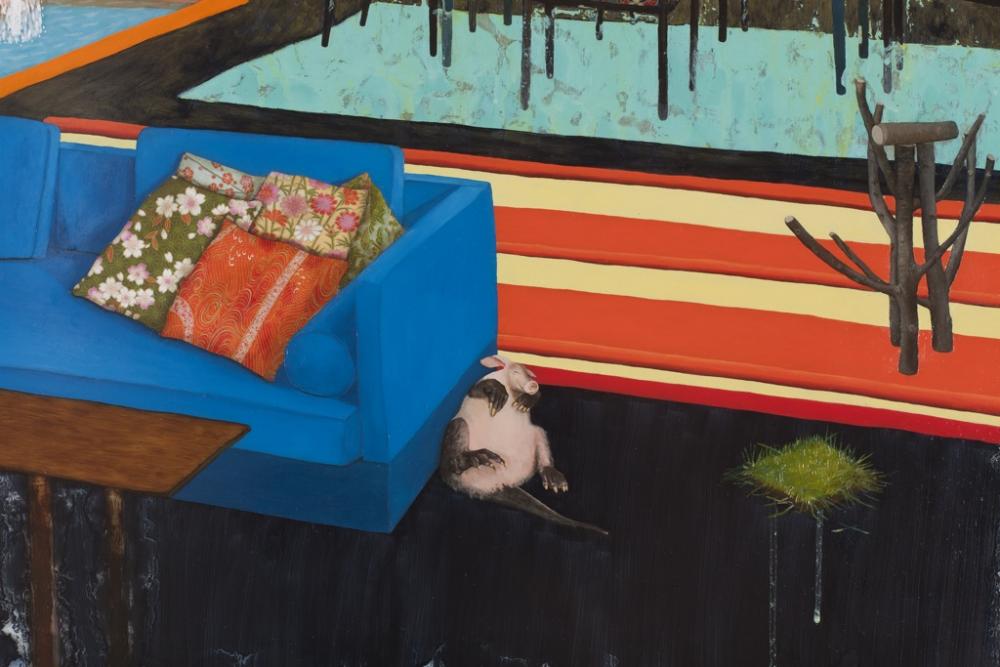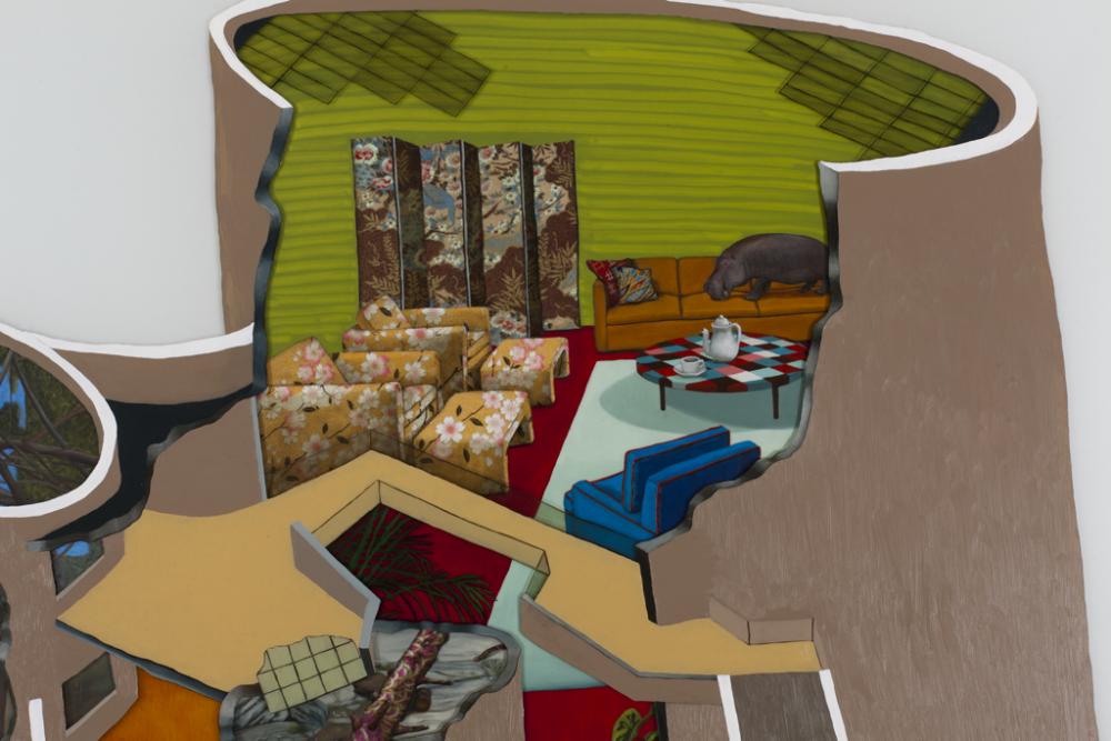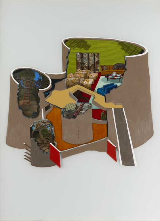 Oil, Acrylic, Japanese paper, Mylar and clear acrylic sheet, 2013, 24"x36"